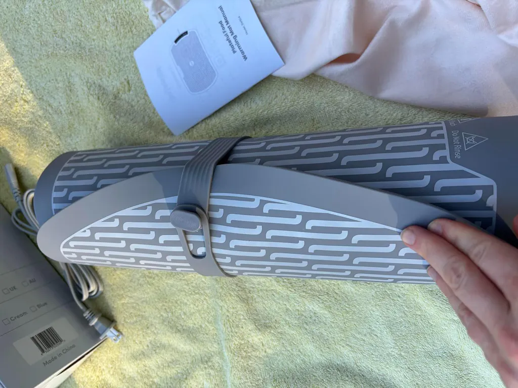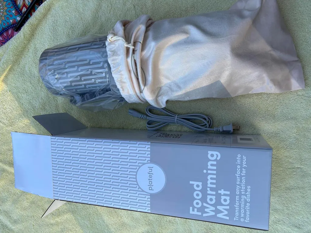 Well made item. It takes a few minutes to warm up, but can warm up leftovers easily and also keep food warm for serving. Cleans easily with a cloth or sponge. This is the second mat (different brands) I own and they are nice for extra space on the counter to keep cooked food warm and can be used with a battery pack at a picnic or outdoors.It comes with a soft bag for storage and also has a strap to secure it when rolled for storage.