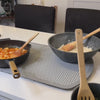 Place your serving dishes on the mat and enjoy. Works with glass, metal, ceramic, even plastic. Your food stays perfect for hours while you relax with your guests.