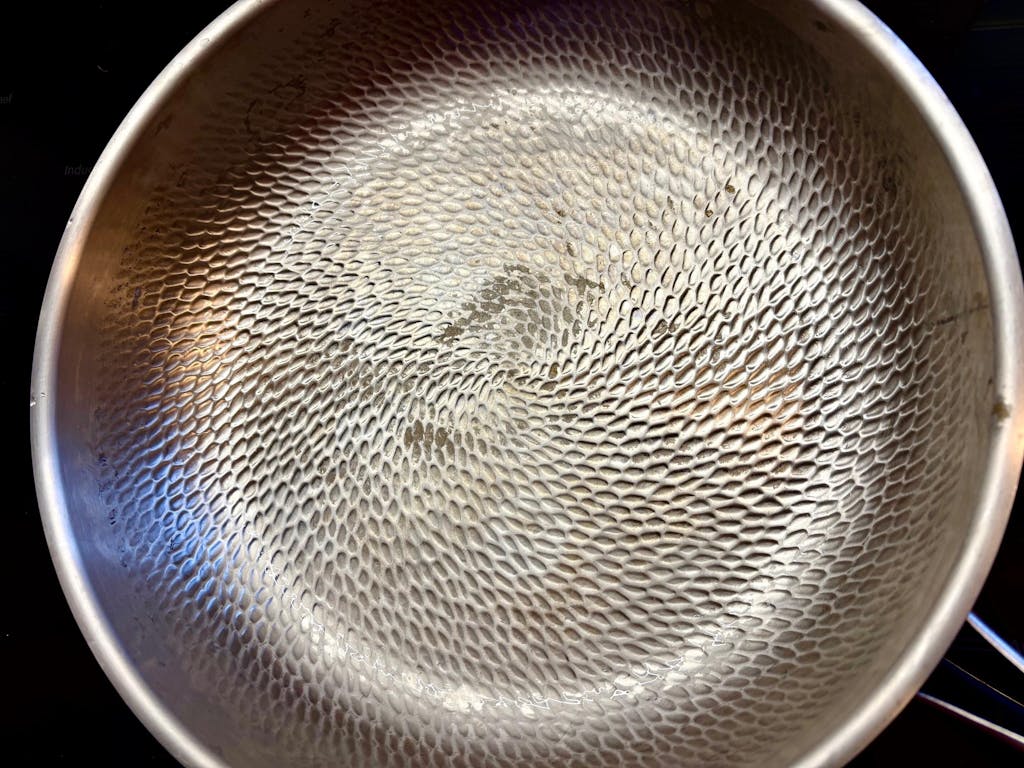 Forget chemical coatings. Our titanium pan features a handcrafted micro-texture inspired by the lotus leaf—nature’s original non-stick surface.